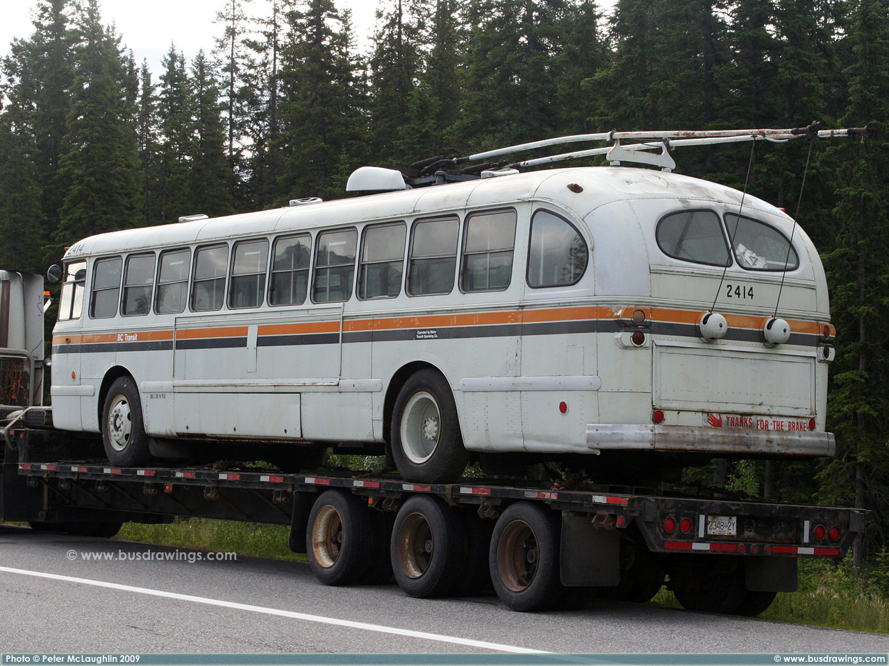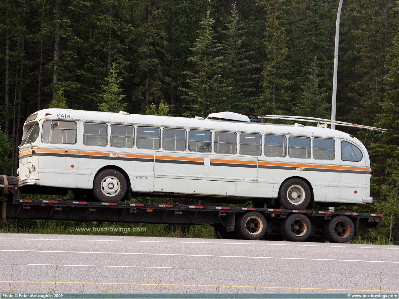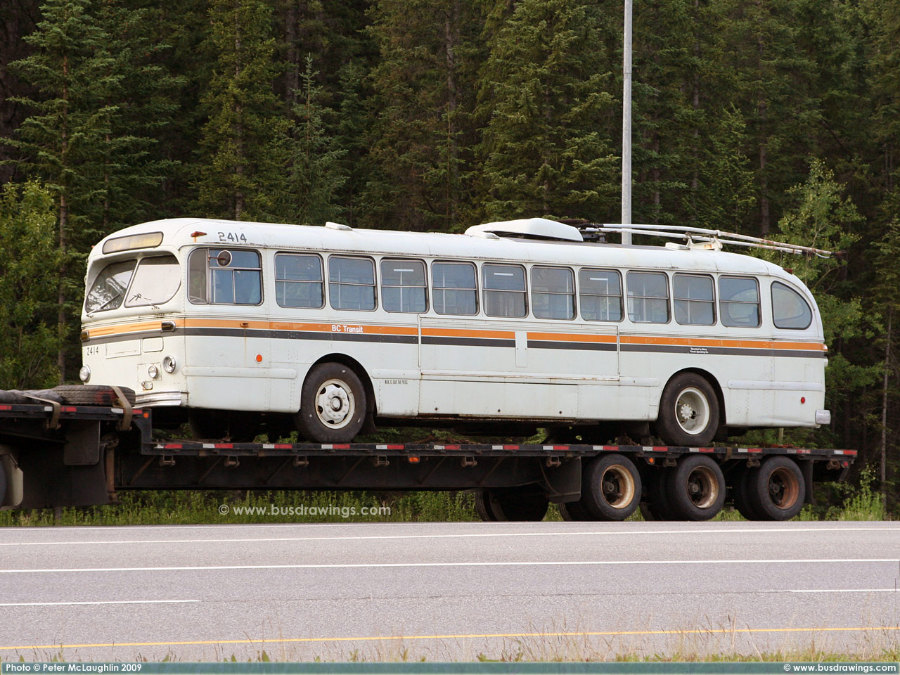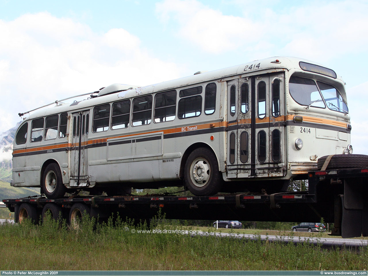 #2414 is seen on the side of the Trans Canada Highway #1 near the turn off for Sunshine Village while resting before continueing it's journey somewhere east of Banff. Photos captured by Peter McLaughlin on July 10, 2009. | |