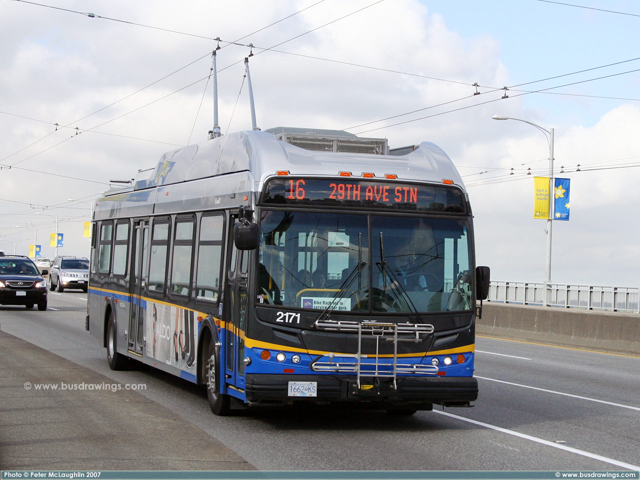#2171 is seen northbound on the Granville Street Bridge heading into the downtown core during the morning peak hours on May 9, 2007. Photo captured by Peter McLaughlin. | |