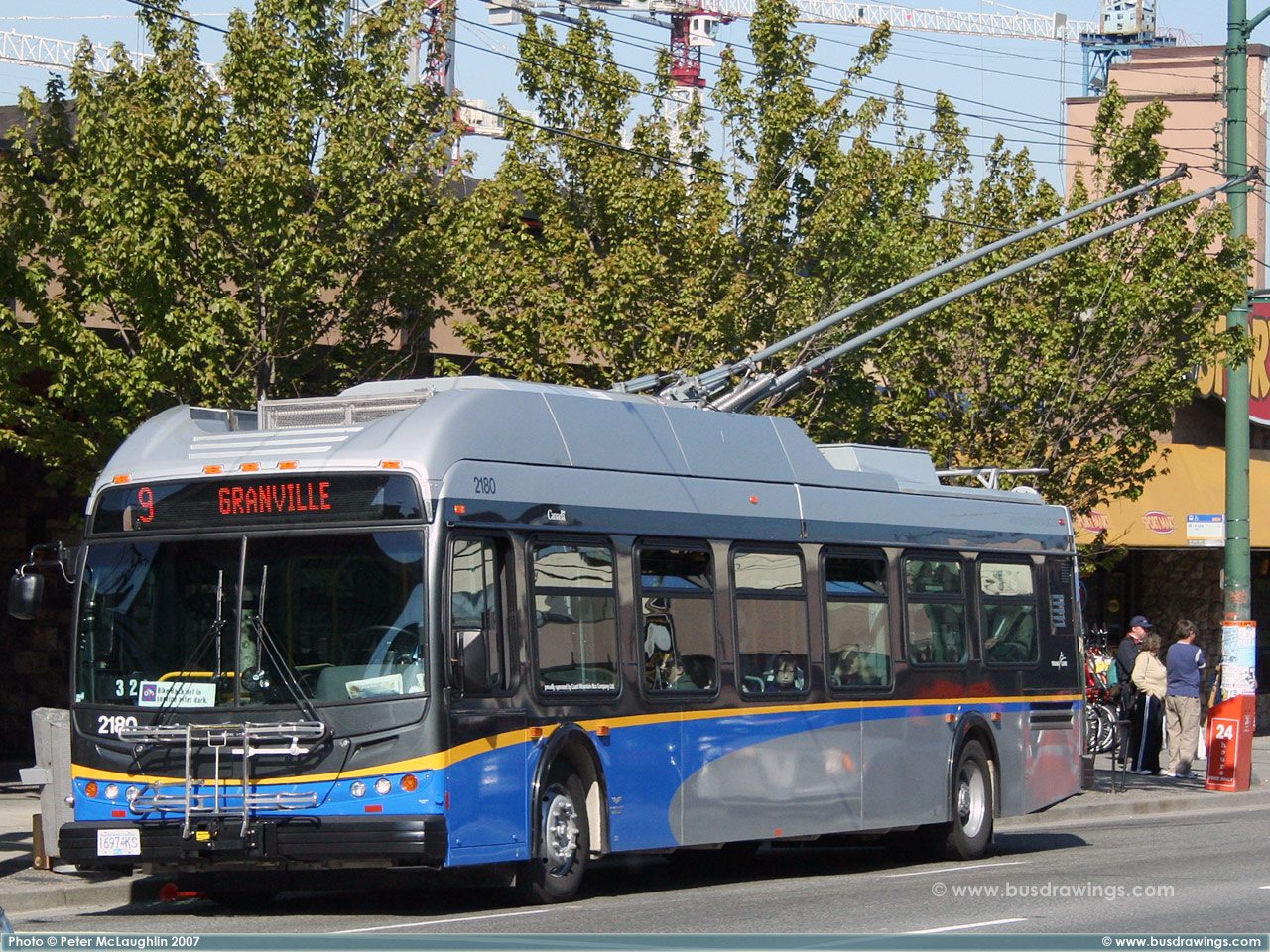 #2180 is seen Southbound on the Granville Street Bridge on May 8, 2007. Photo captured by Peter McLaughlin. | |