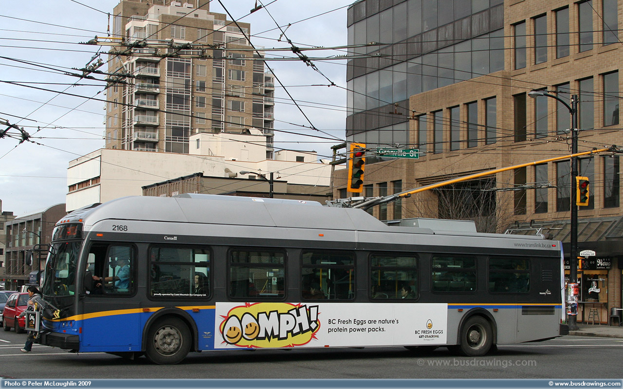 #2168 is seen Southbound on Granville Street at Broadway on February 23, 2009. Photos captured by Peter McLaughlin. | |