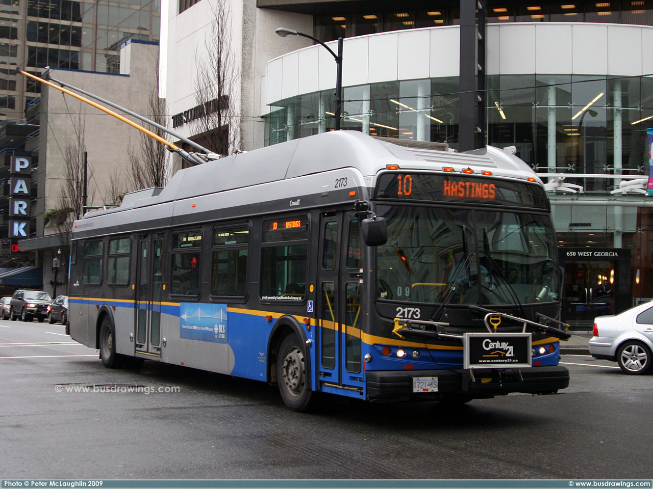 #2173 is seen at Broadway and Granville Street on February 23, 2009. Photo captured by Peter McLaughlin. | |