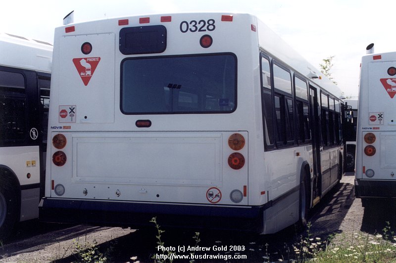 Here is a rear shot of freshly delivered Nova LFS #0328. Notice the different tail light assembly compared to the earlier 2003 models delivered to the STO. Photo by Andrew Gold. | |