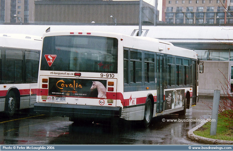 #9-910 resting at the Longueuil Terminal on April 23, 2006. Photo captured by Peter McLaughlin. | |