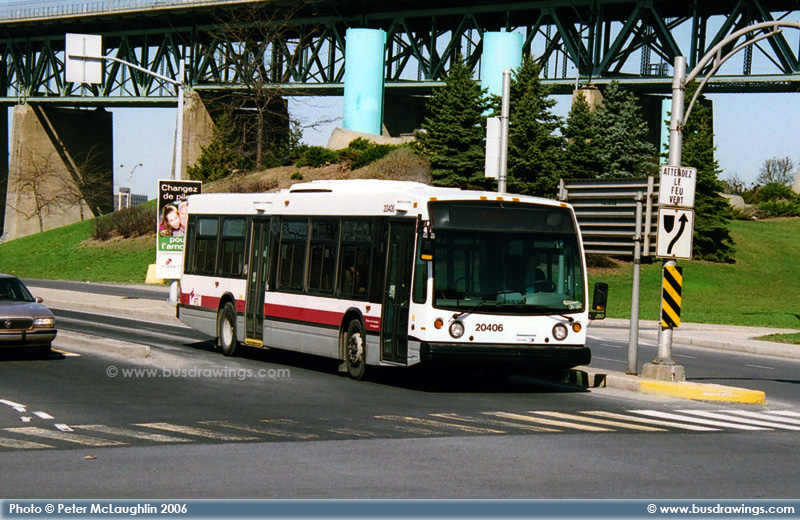#20406 departing the Longueuil Terminal on April 22, 2006. Photo captured by Peter McLaughlin. | |