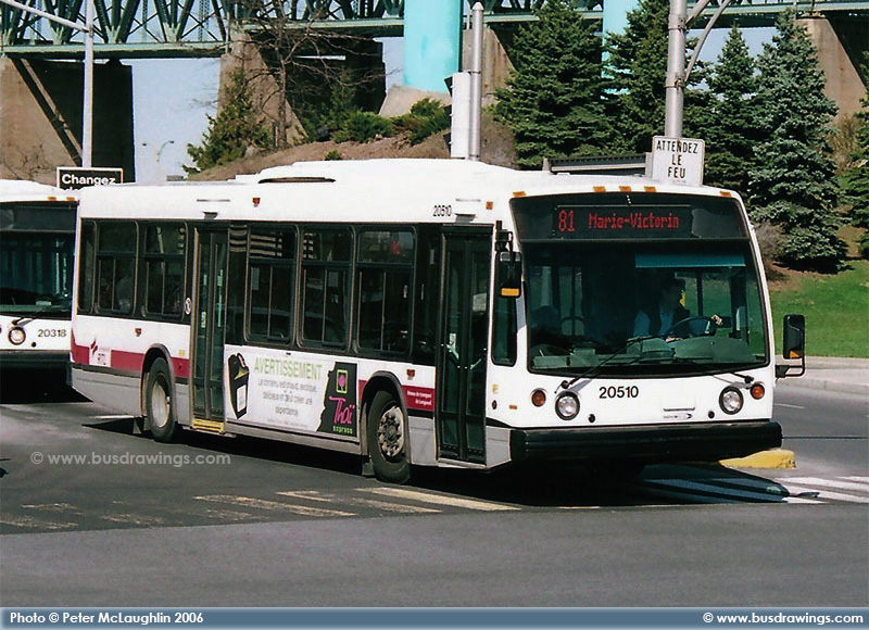 #20510 is seen shortly after departing from the Longueuil Terminal as a route 81 Marie-Victoria in this shot captured by Peter McLaughlin on April 22, 2006. | |