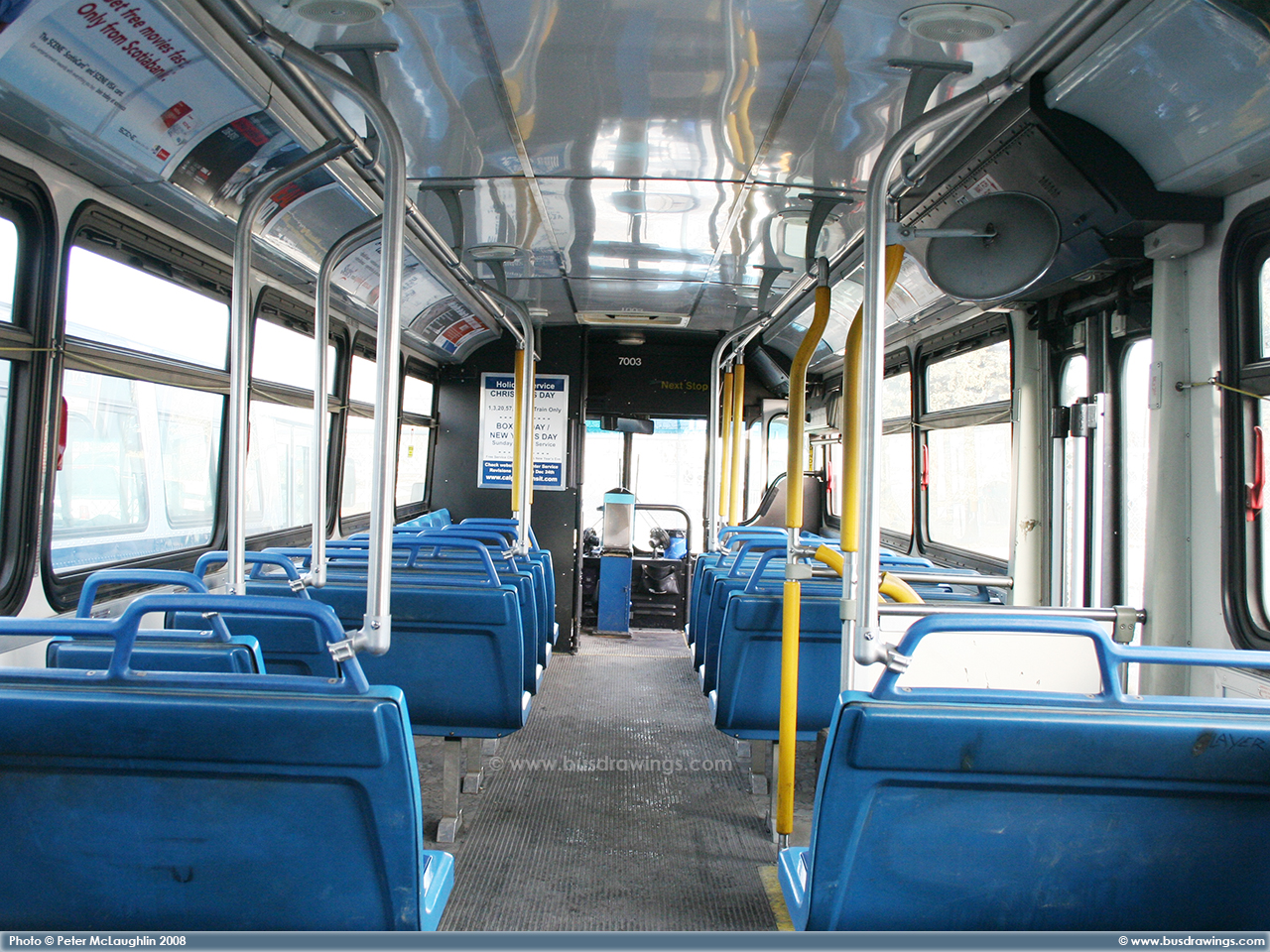 Interior views of #7003 while parked at the Spring Gardens garage on January 4, 2008. Photos captured by Peter McLaughlin. |