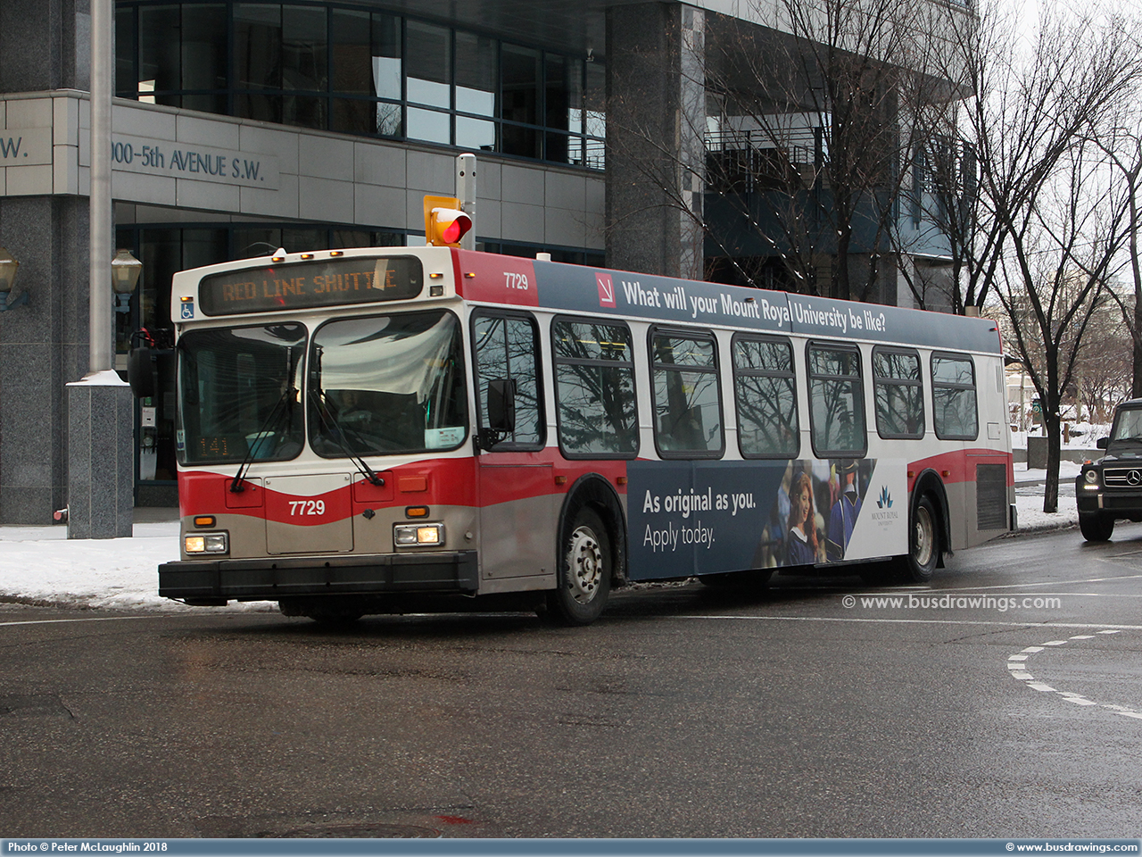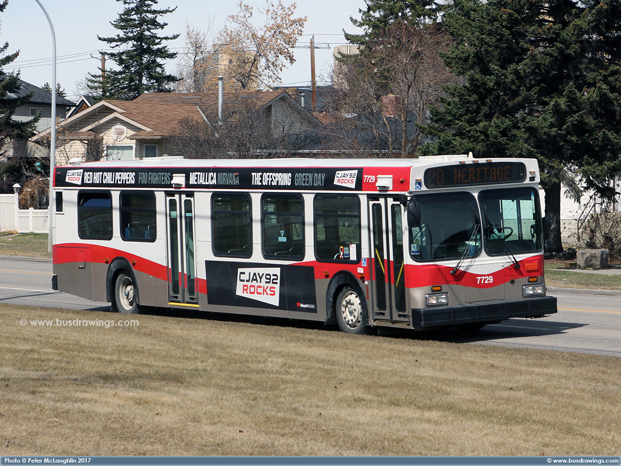 #7729 is seen working a route 20 Heritage while heading eastbound on Parkdale Blvd. just west of 27th Street N.W. on April 14, 2017. Photo captured by Peter McLaughlin. | |