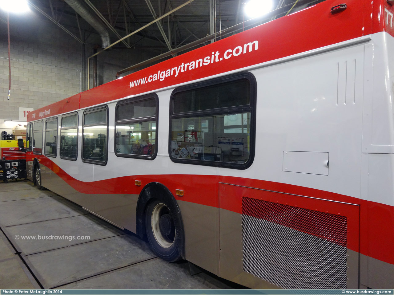 #7735 working a route 1 in the new red livery on August 16, 2014. Photo captured by Peter McLaughlin. | |