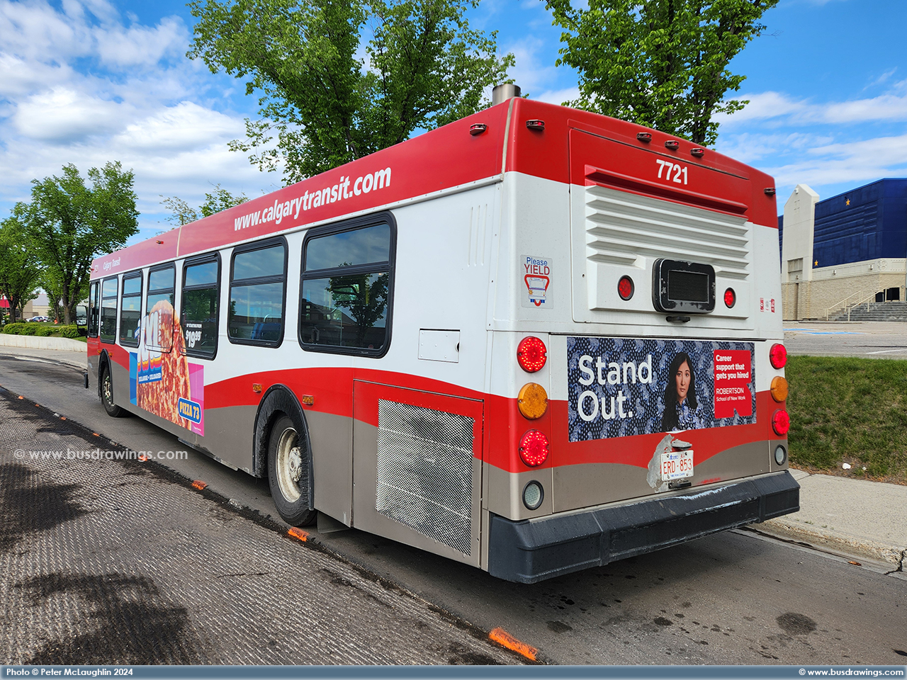 #7721 is seen on a layover at the Westhills Shopping Centre on June 10, 2024. This bus would be retired just one month after these photos were captured by Peter McLaughlin. | |