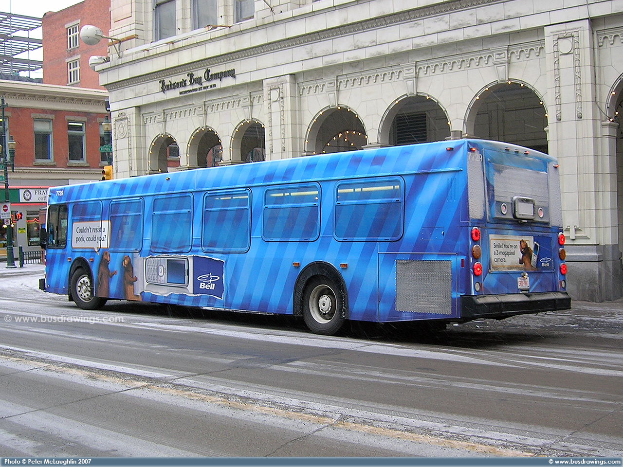 #7729 is seen on 1st St. at 8th Ave. S.W. in the downtown core on January 13, 2007. Photo captured by Peter McLaughlin. | |