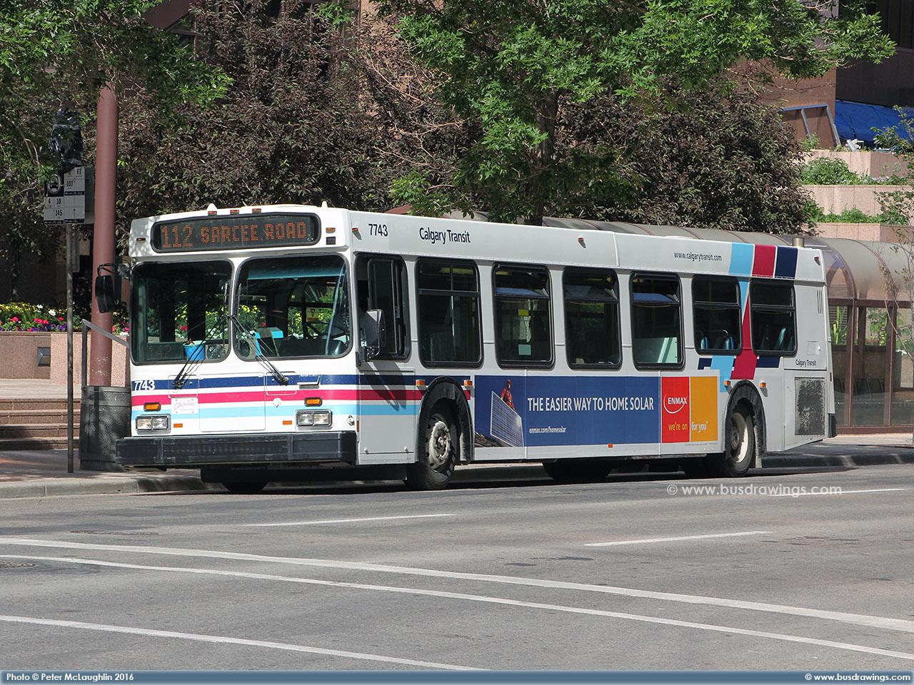 #7743 in the downtown core on 6th Ave. at 1st St. S.W. while working the route 112 Sarcee Road on July 7, 2013. Photo captured by Peter McLaughlin. | |