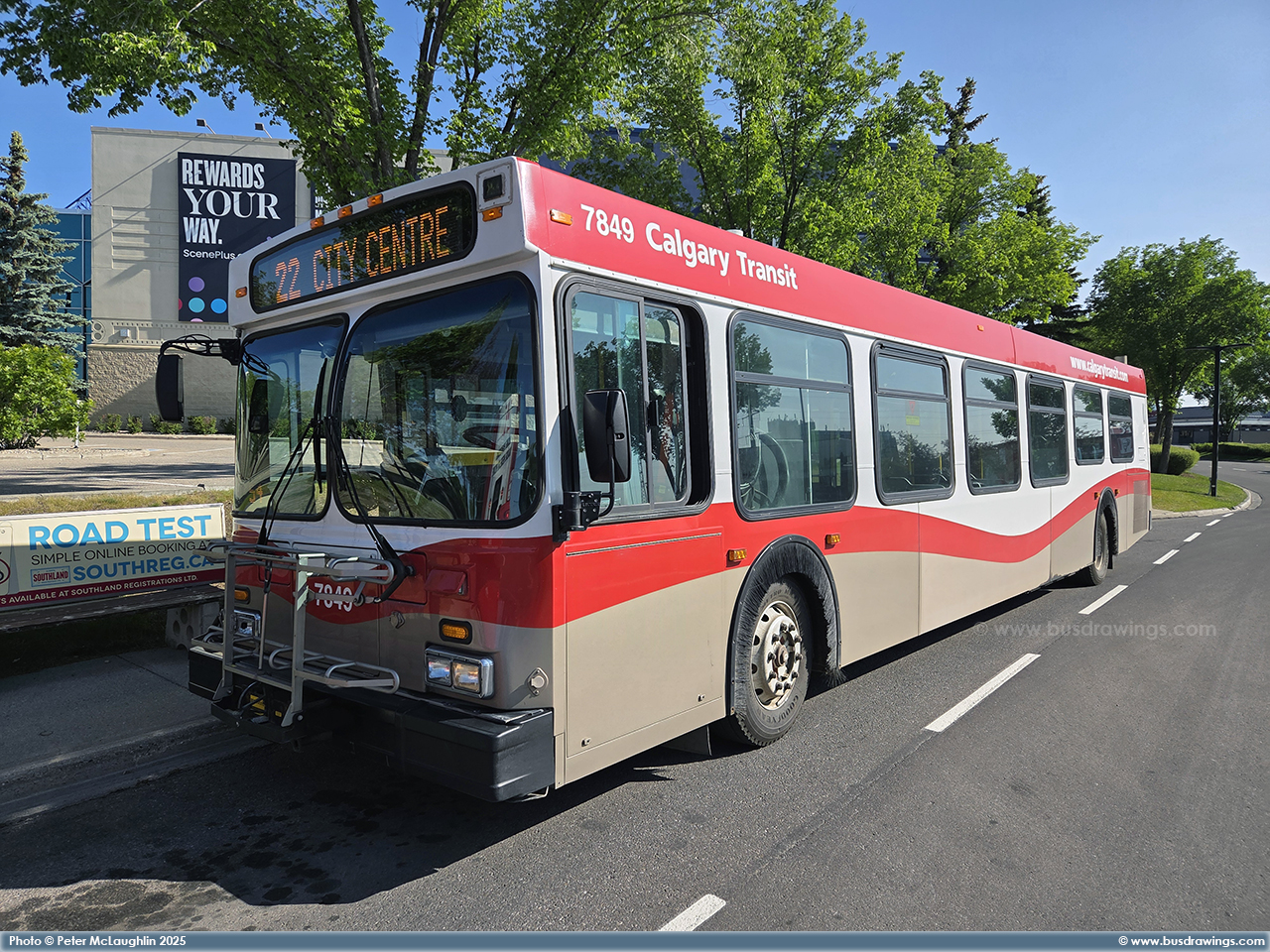 #7849 is seen on a layover at the Westhills Shopping Centre on June 19, 2025. Photos captured by Peter McLaughlin. | |
