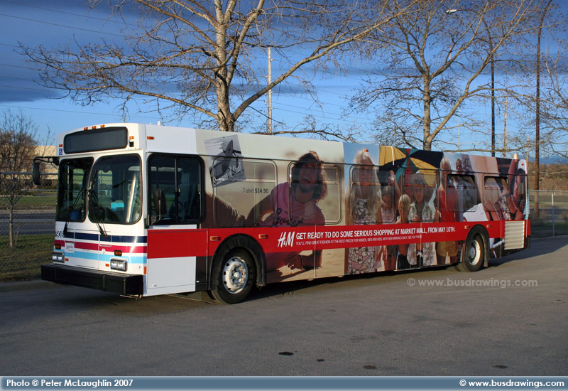 #7908. Photo captured at the Spring Gardens Transit Garage on April 27, 2007. She had just been wrapped probably the day before this photo was taken. I had just driven this bus about 2 days before this and it did not have the wrap on it. | |