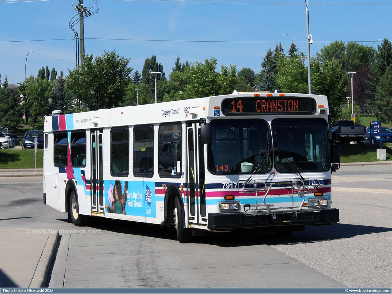 #7917 is seen arriving at the Somerset / Bridlewood Station as a route 14 on July 31, 2025. Photo captured by Luke Olszewski. | |