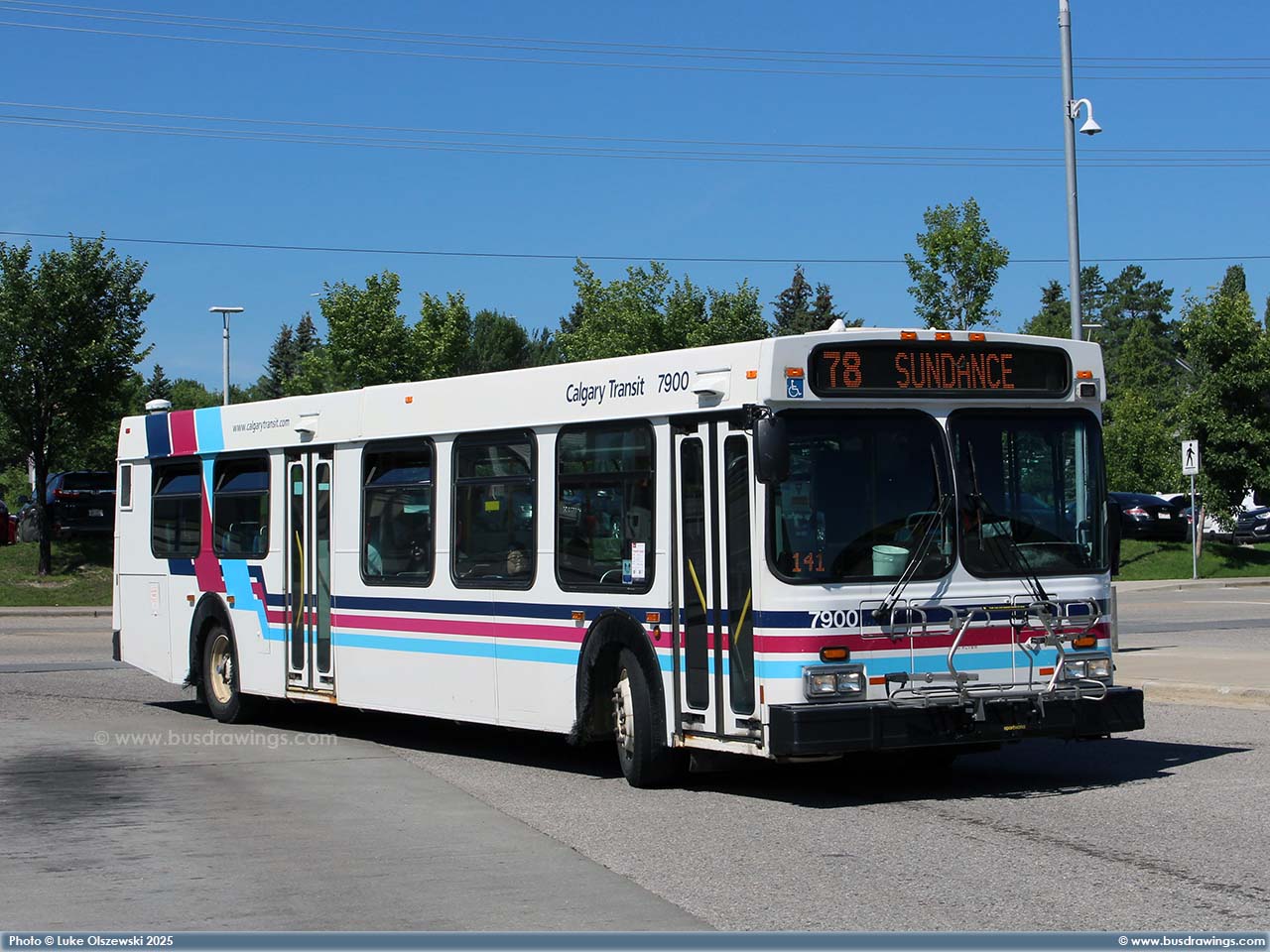 #7900 is seen arriving at the Somerset / Bridlewood Station as a route 78 Sundance on July 31, 2025. Photo captured by Luke Olszewski. | |