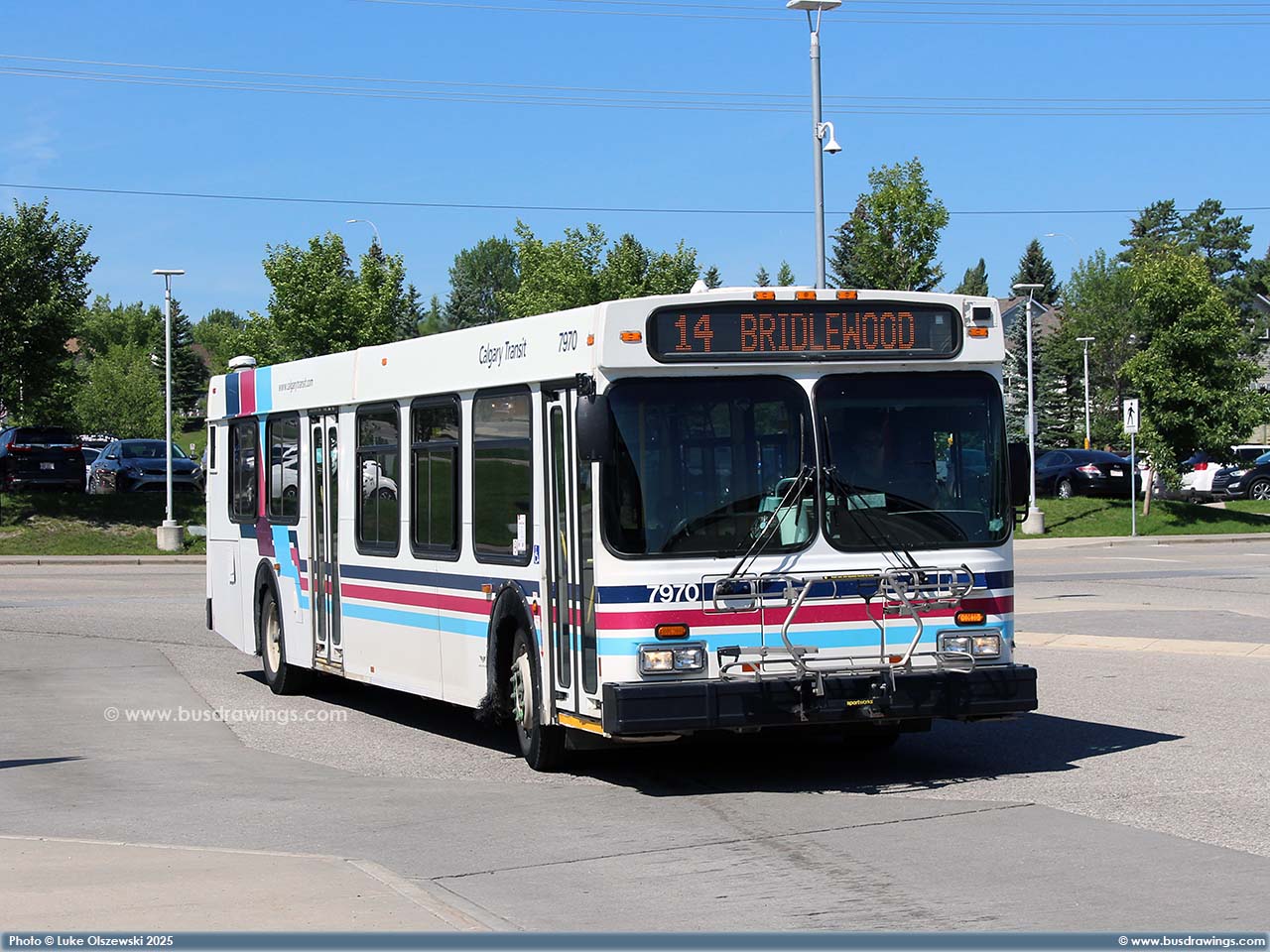 #7970 is seen arriving at the Somerset / Bridlewood Station as a route 14 on July 31, 2025. Photo captured by Luke Olszewski. | |