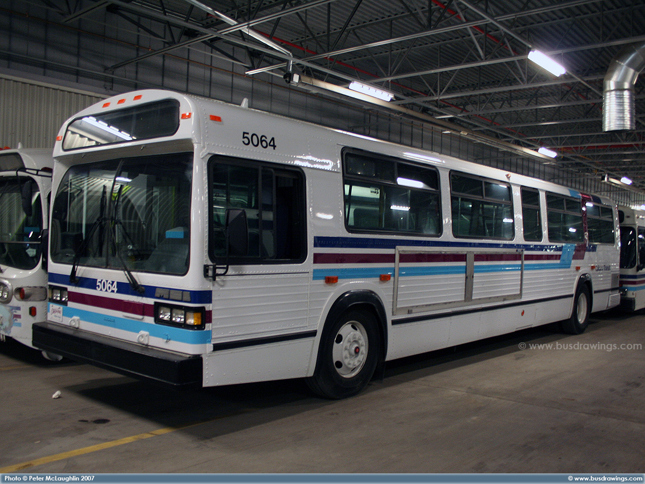 #5064 is seen at the Spring Gardens Transit Centre shortly after returning from being rebuilt in this view taken on January 22, 2007. Photo captured by Peter McLaughlin. | |