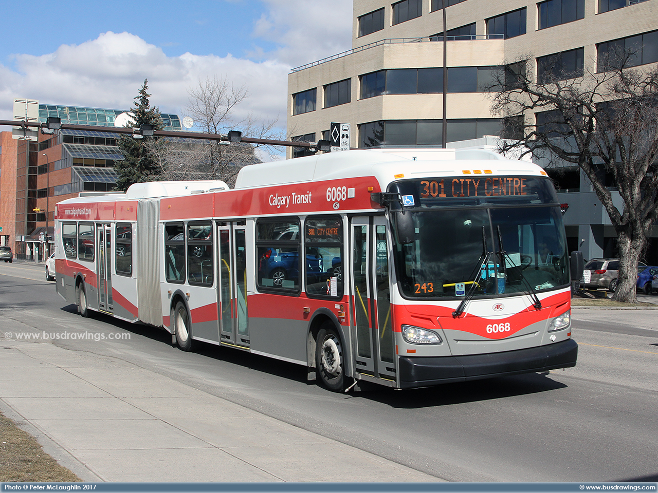 #6068 is seen southbound on Centre St. at 10th Ave. while working a route 301 on April 3, 2017. Photo captured by Peter McLaughlin. | |