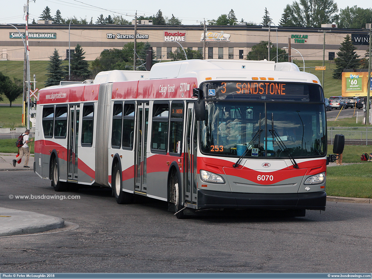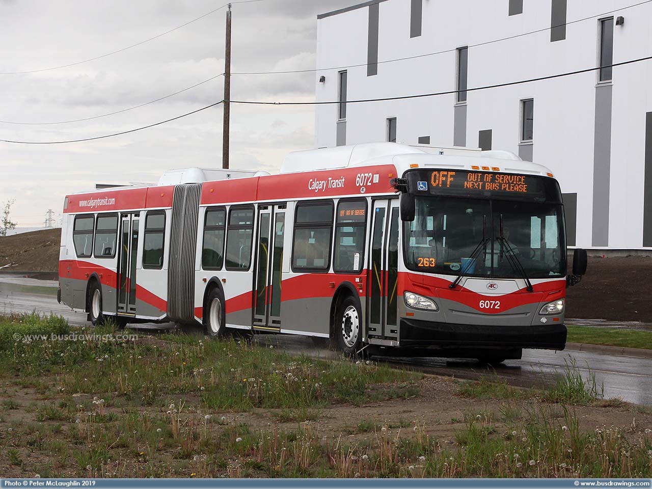 #6072 is seen on a layover on 6th St. at Canyon Meadows Drive S.W. while working a route 3 on July 20, 2017. Photo captured by Peter McLaughlin. | |