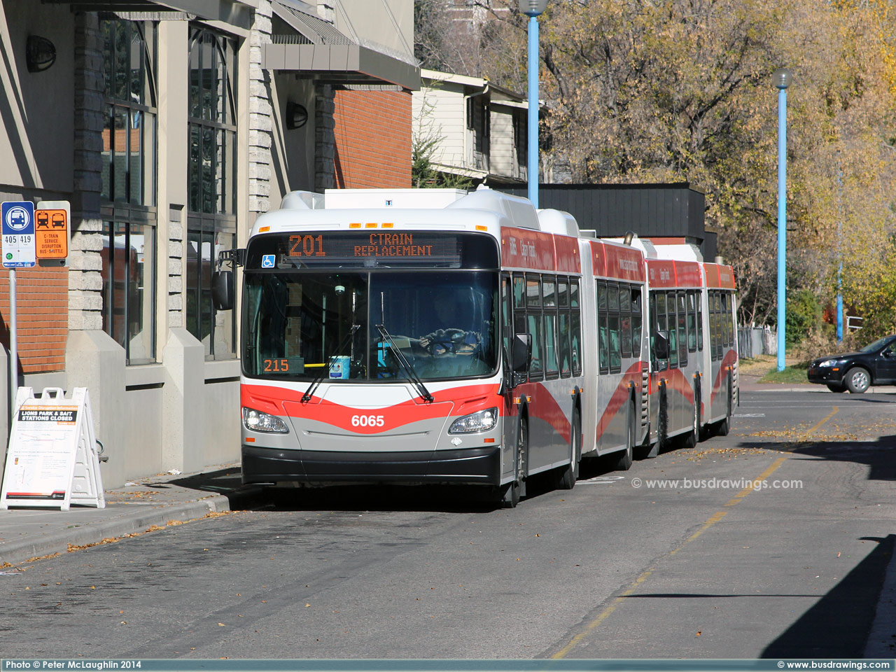 #6065 in the downtown core working CTrain replacement shuttles on October 13, 2013. Photo captured by Peter McLaughlin. | |