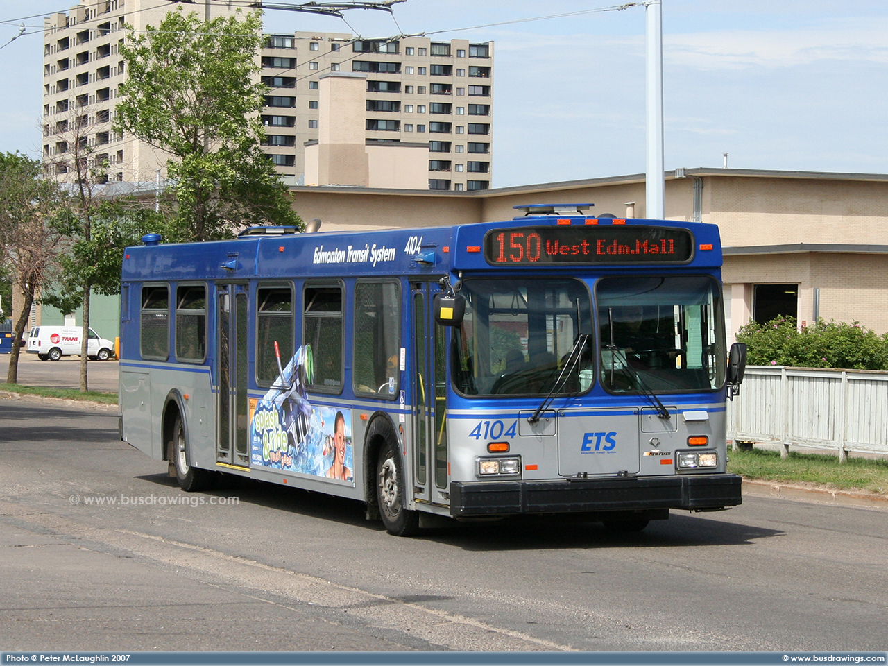 #4125 is seen just outside the Jasper Place Transit Centre on August 14, 2005. Photo captured by Peter McLaughlin. | |