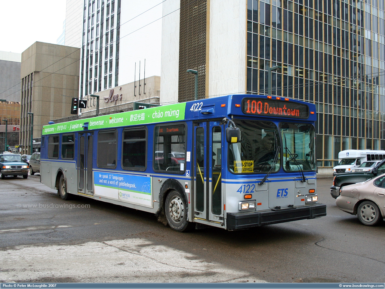 #4122 is seen by the Westmount Transit Centre while working a route 128 on July 3, 2007. Photo captured by Peter McLaughlin. | |