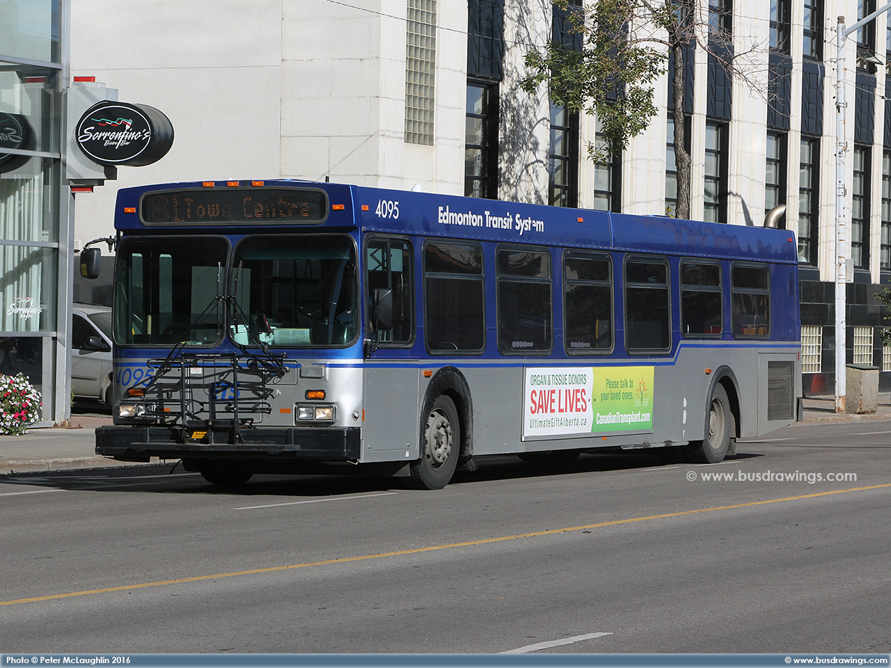 #4095 southbound on 100th St. north of Jasper Avenue on August 29, 2016. Photo captured by Peter McLaughlin. | |