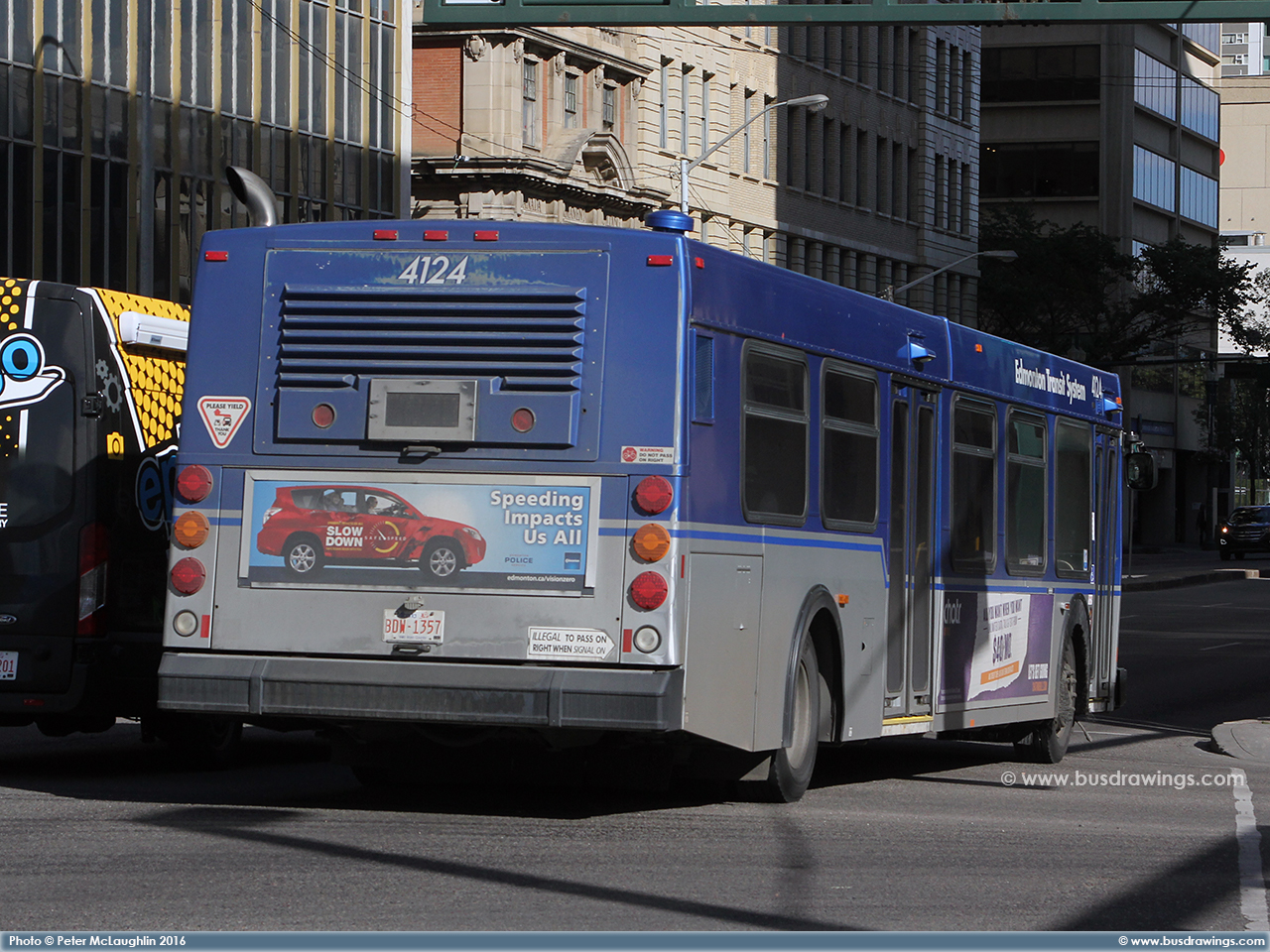 #4124 northbound on 100th St. at Jasper Avenue on August 29, 2016. Photo captured by Peter McLaughlin. | |