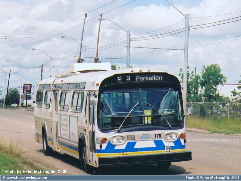#179 is seen working as a route 133 Parkallen on 156th St. in this shot captured by Peter McLaughlin in July 2005. | |
