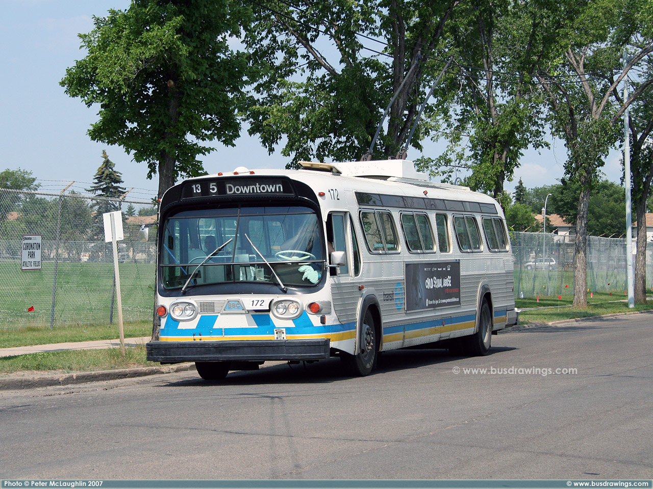#172 arriving at Westmount Transit Centre on July 17, 2007. Photo captured by Peter McLaughlin. | |