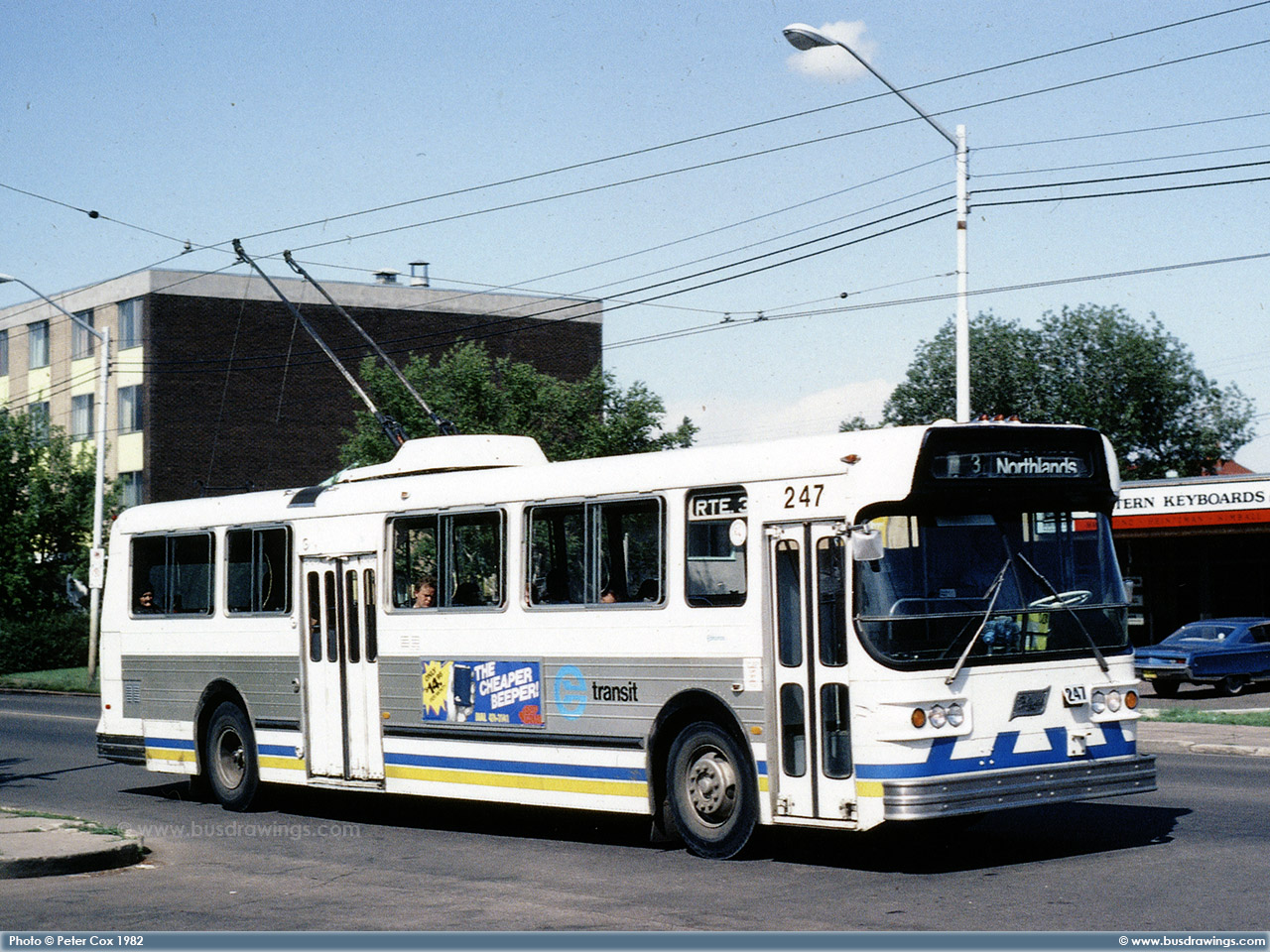 #247 is seen working as a route 3 Cromdale on July 12, 1982. Photo captured by Peter Cox. | |