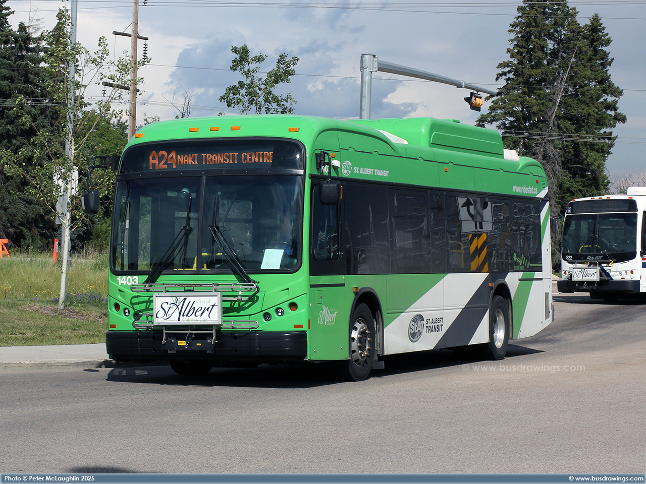 #1403 is seen on a layover at the Nakî Transit Centre on July 24, 2025. Photo captured by Peter McLaughlin. | |