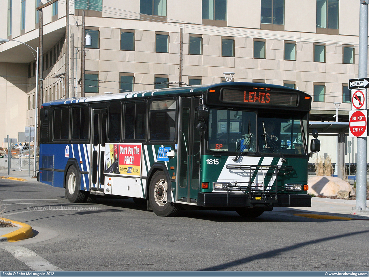 #1815 is seen arriving and then departing the downtown Transit Center on April 10, 2012. Photos captured by Peter McLaughlin. | |