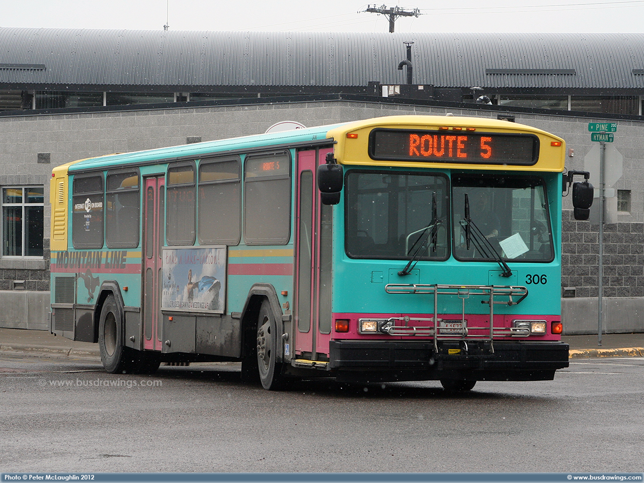 #306 departing from the downtown Transit Terminal on April 6, 2012. Photos captured by Peter McLaughlin. | |