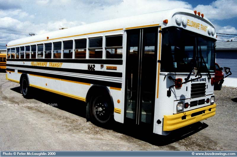 #1662 is seen parked in the Cardinal Coach Lines Yard in August of 2000 after being returned from Yellowknife Transit. Photo captured by Peter McLaughlin. | |