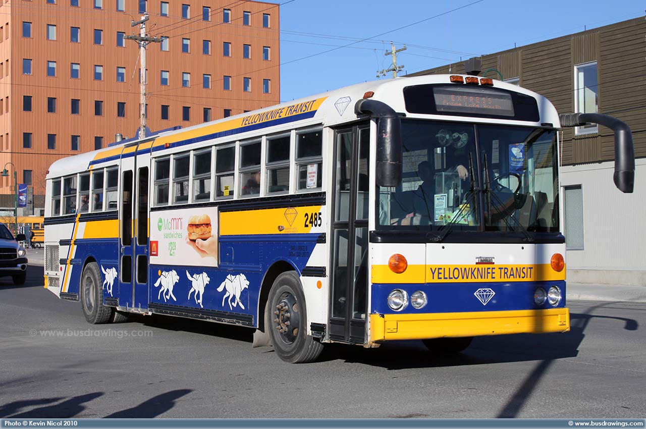 #2485 is seen resting at the Yellowknife Transit Yard on April 29, 2010. Photo captured by Kevin Nicol. | |