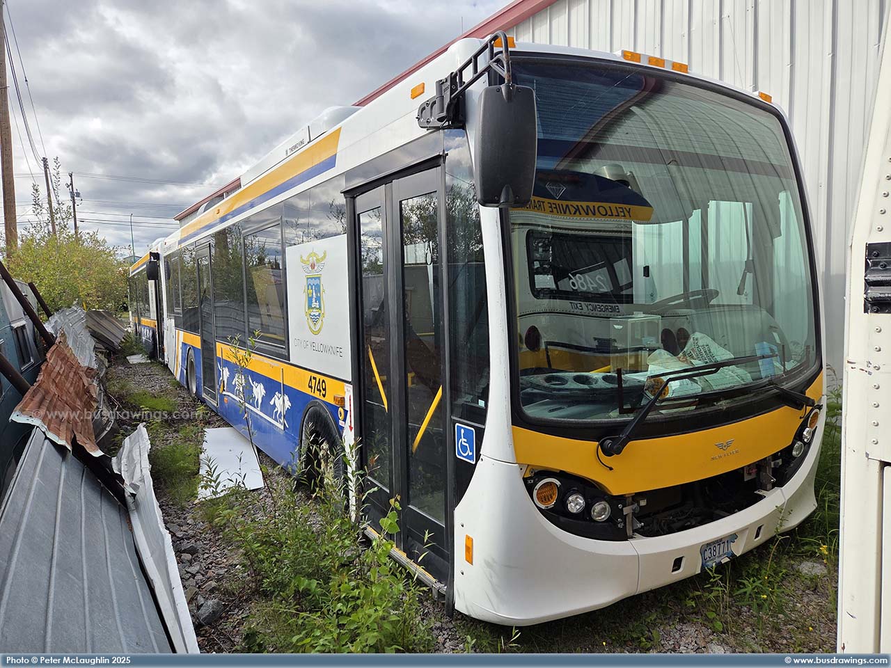 #4749 parked and retired outside the garage with 4748 parked behind it. Photo captured by Peter McLaughlin on July 21, 2025. | |