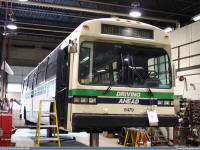 8374 on the hoist in her former St. Catharines Transit fleet number of 8479 shortly after being purchased 2008. Photo captured Peter McLaughlin on May 4, 2008. | |