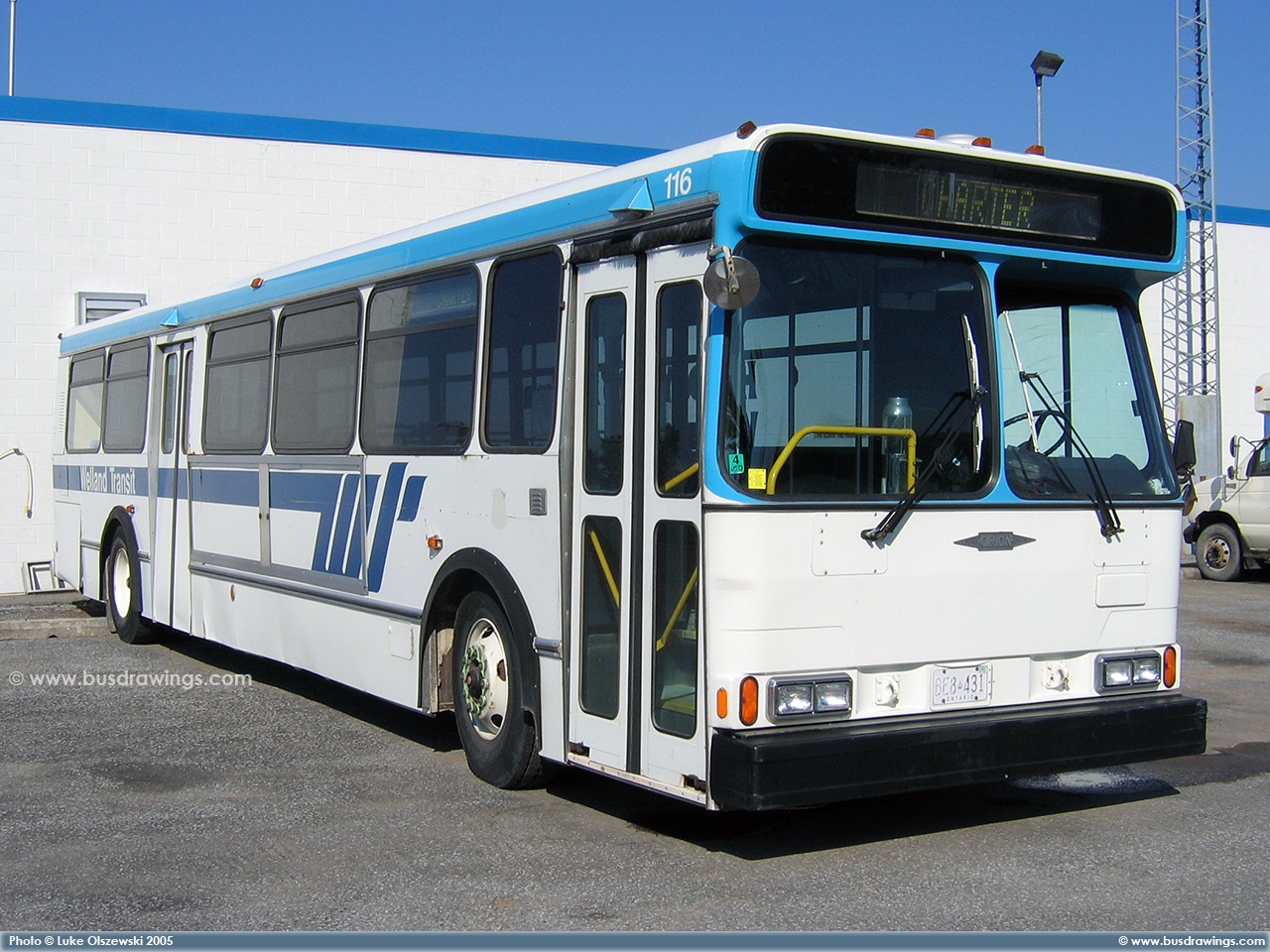#116 resting at the Welland Transit Garage on September 6, 2005. Photo captured by Luke Olszewski. | |