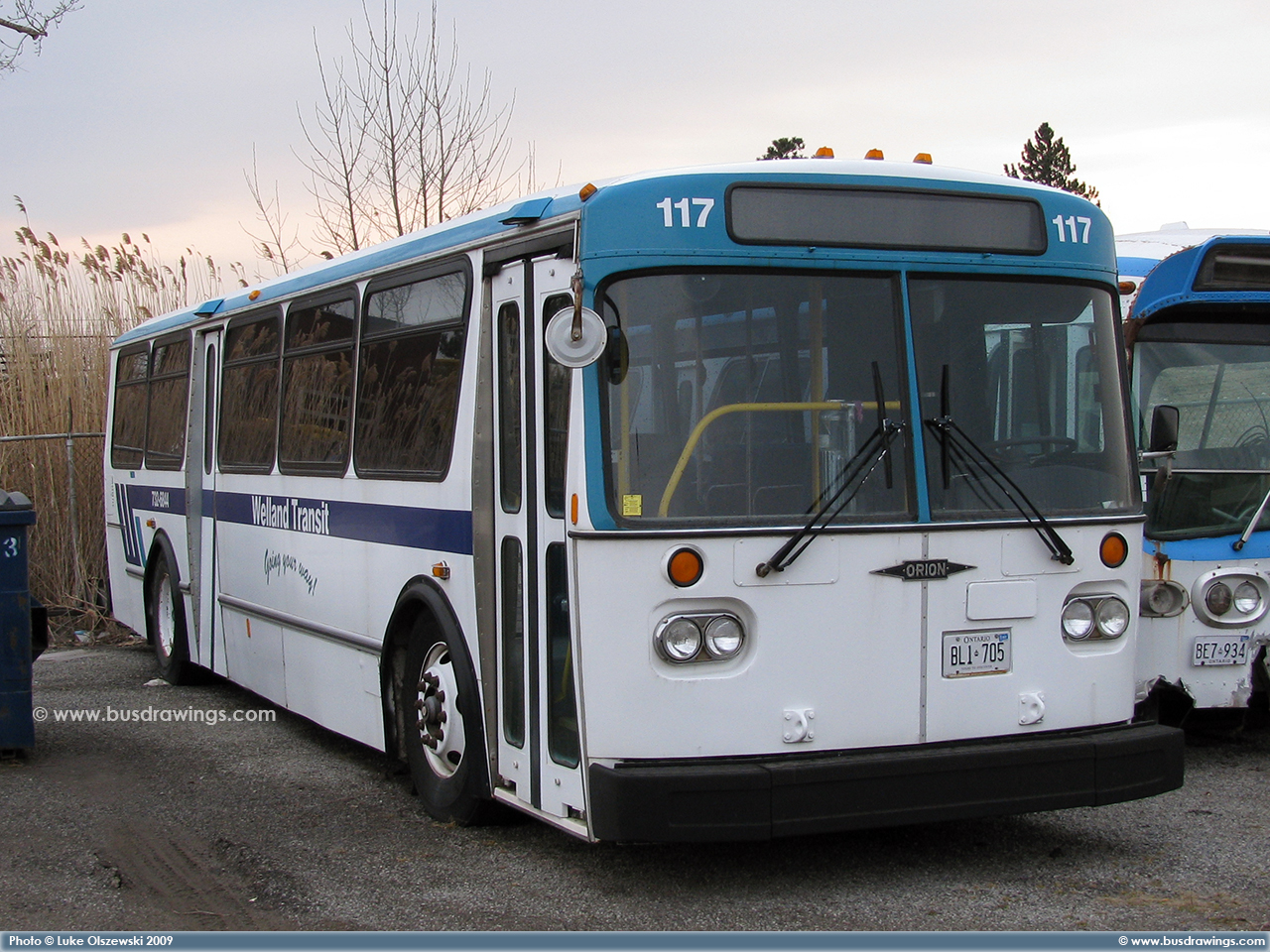 #117 is seen parked outside at the Welland Transit Garage on March 18, 2009 in this photo captured by Luke Olszewski. | |