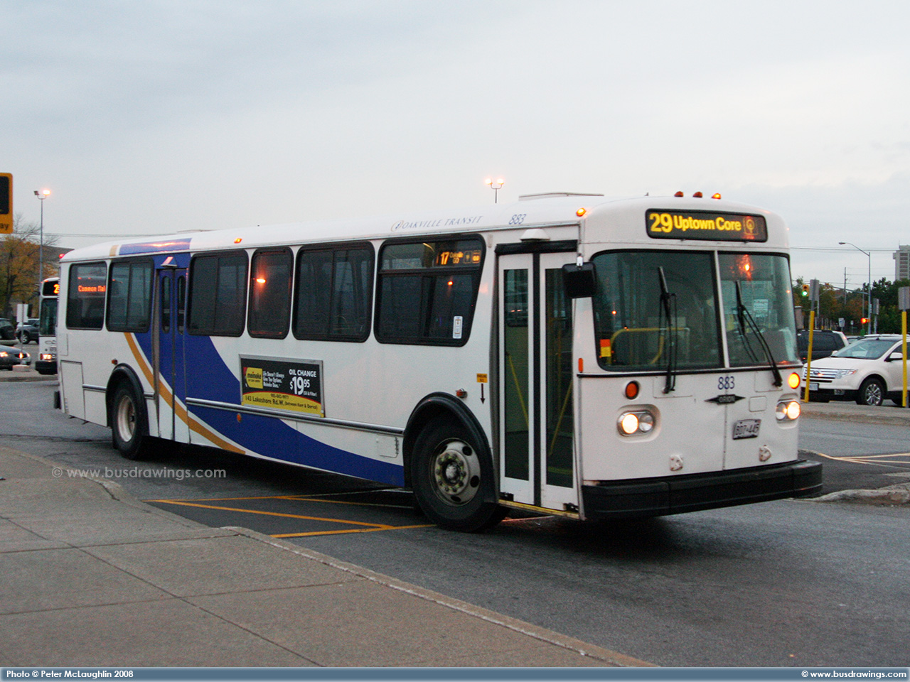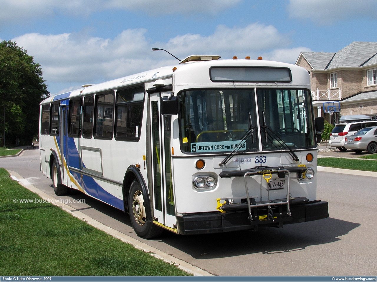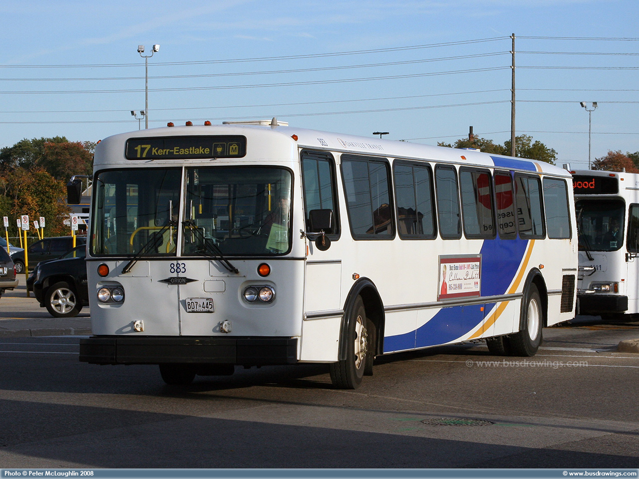 #883 is seen posed for photos at various locations during the "Oakville Transit Orion I #883 Farewell Charter" which was organized by Felix Tse and Jan Boic. Photos captured by Luke Olszewski on August 29, 2009. | |