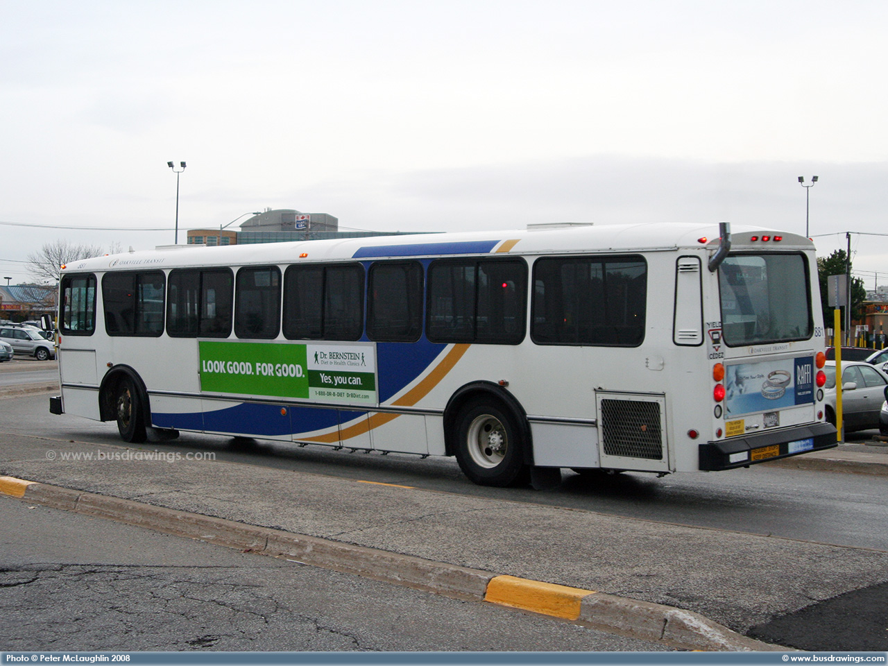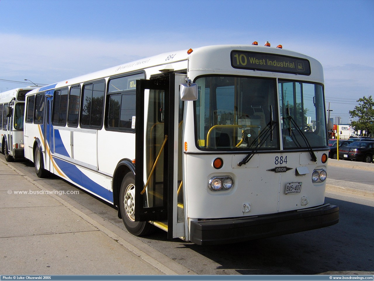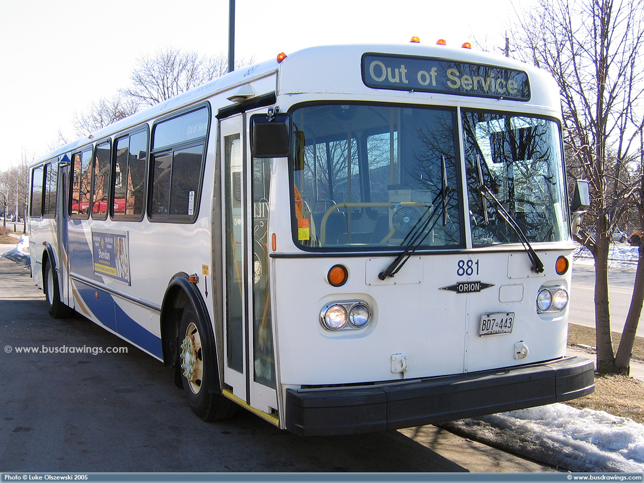 #883 is seen posed for photos at various locations during the "Oakville Transit Orion I #883 Farewell Charter" which was organized by Felix Tse and Jan Boic. Photos captured by Luke Olszewski on August 29, 2009. | |