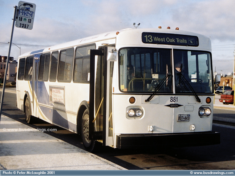 #881 at the Oakville GO Station in December 2001. Photo captured by Peter McLaughlin. | |