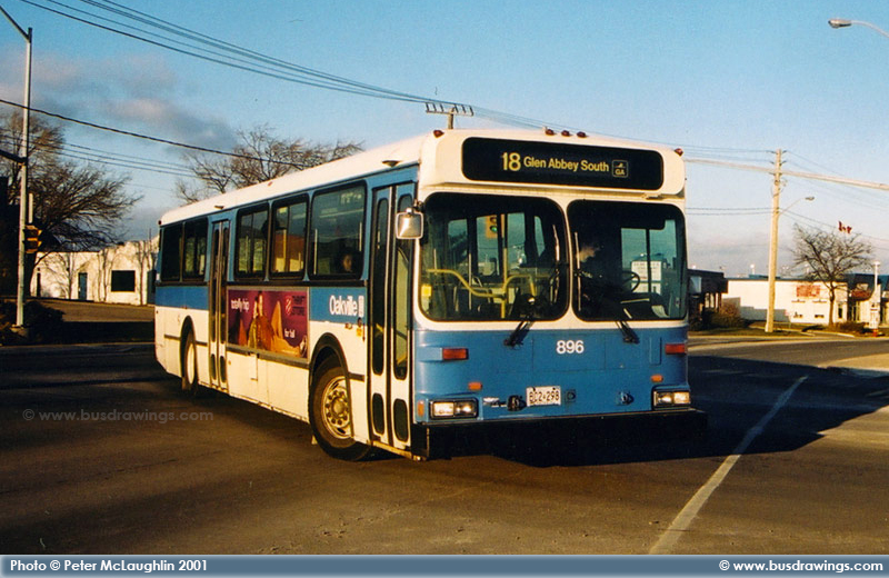 #896 arriving at the Oakville GO Station. Photo captured by Peter McLaughlin in December 2001. | |