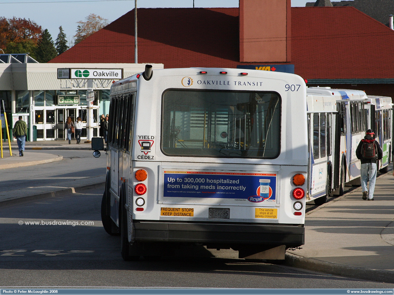 #907 arriving departing the Oakville GO station on October 17, 2008 at two different times during the afternoon peak hours. Photos captured by Peter McLaughlin. | |