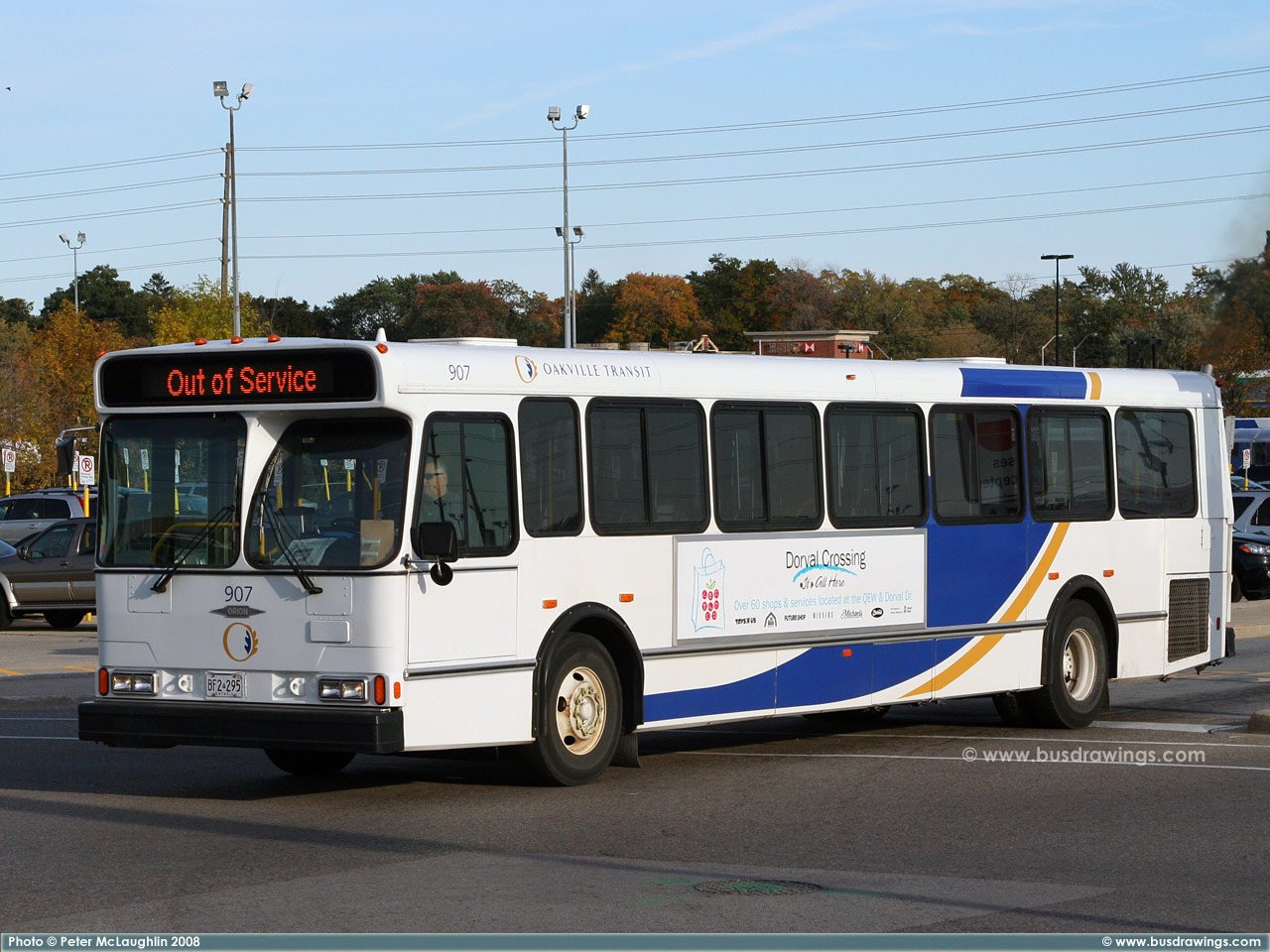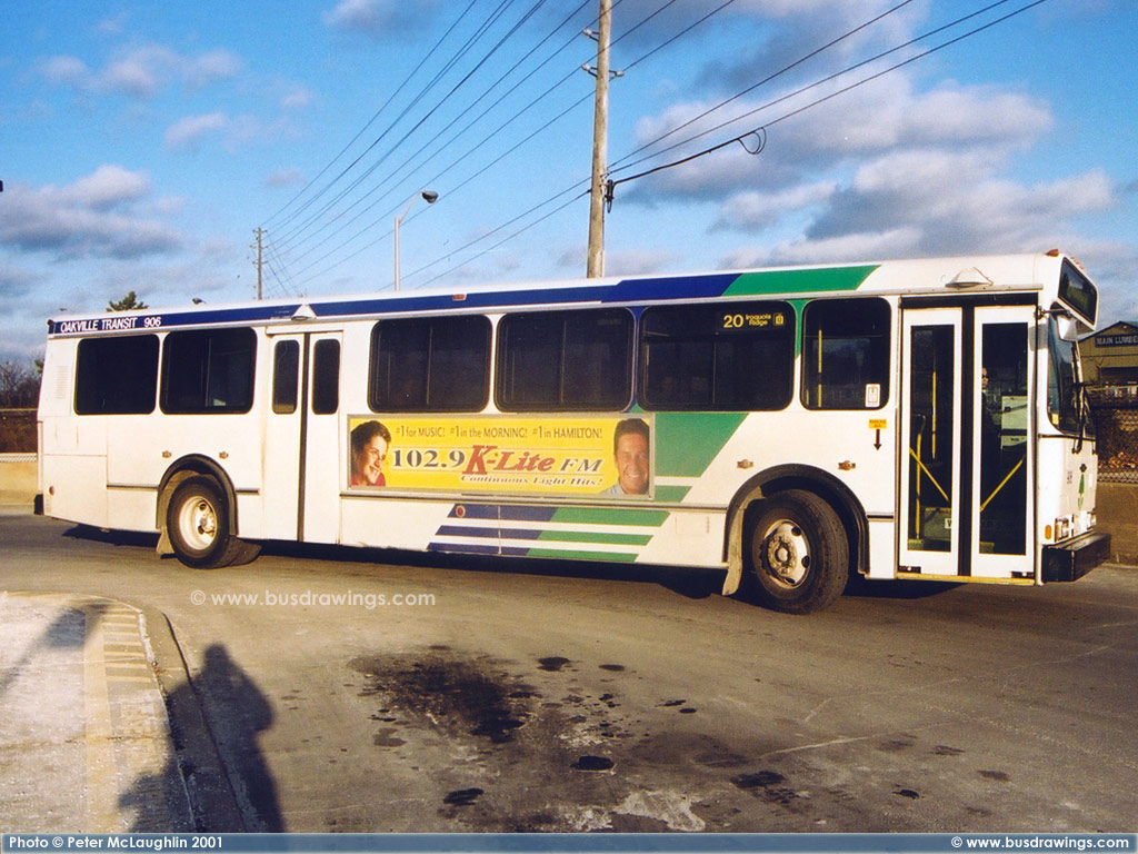 #906 arriving at the Oakville GO station on October 17, 2008. Photo captured by Peter McLaughlin. | |