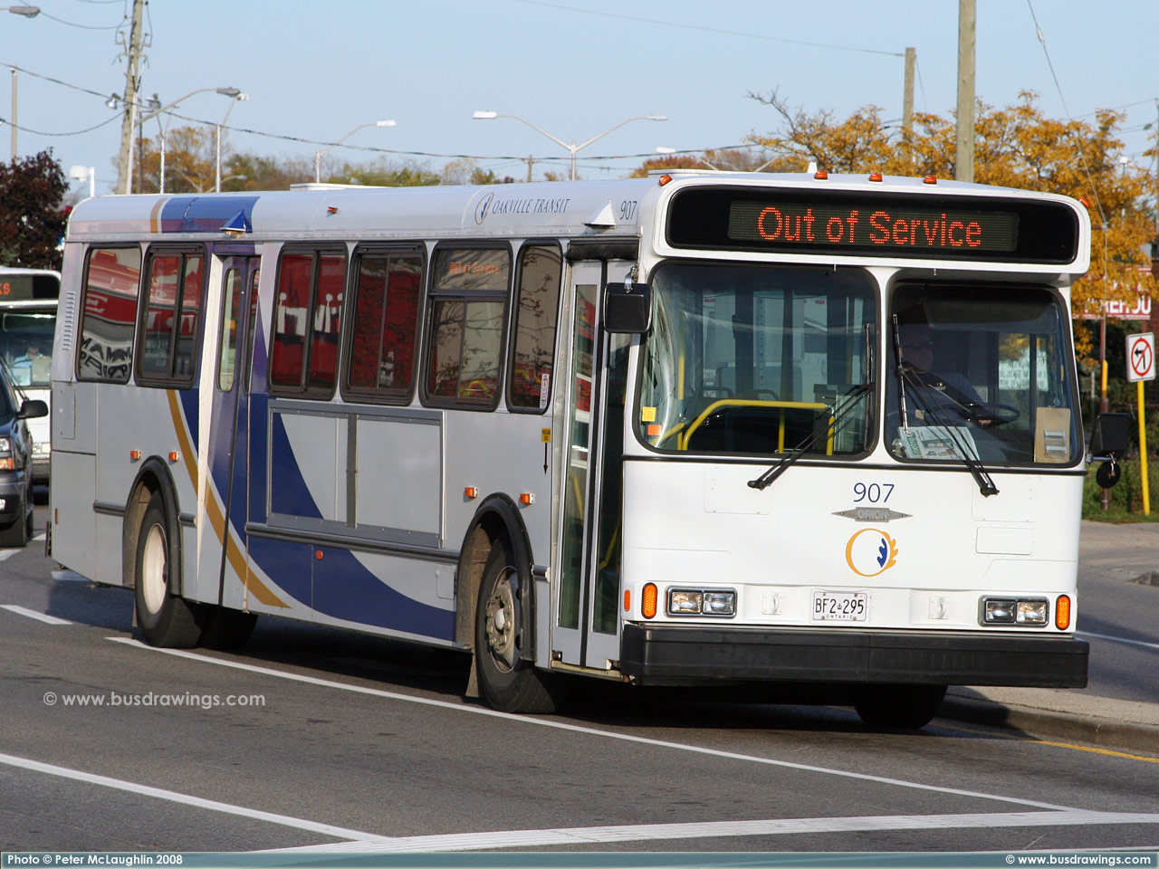 #902 departing the Oakville GO station on October 17, 2008. Photo captured by Peter McLaughlin. | |