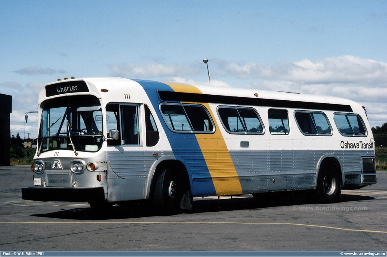 #111 at the Oshawa Transit Garage on September 23, 1981. Photo captured by W.E. Miller. | |