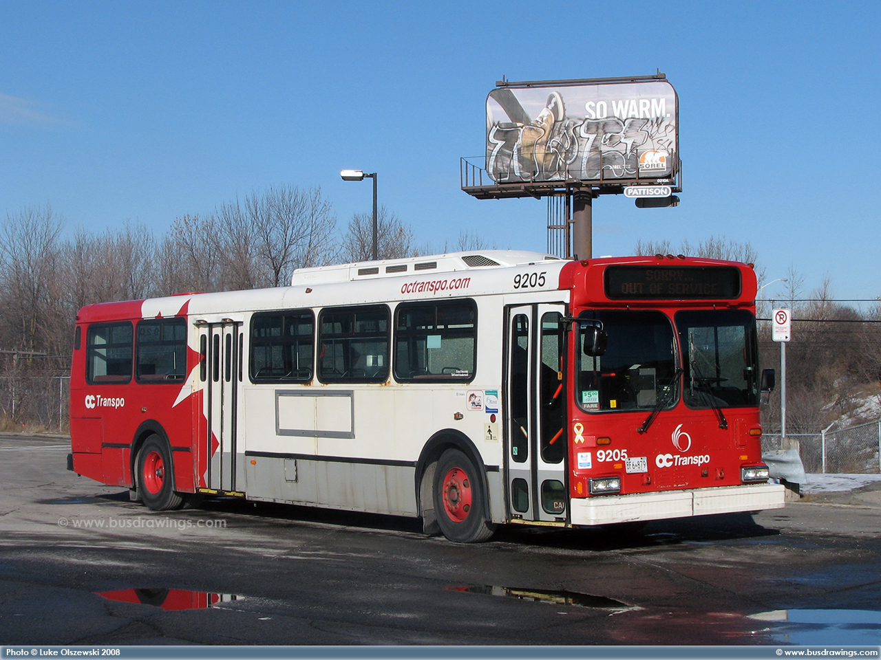 #9205 is seen resting at the St. Laurent Garage on December 5, 2008. Photo captured by Luke Olszewski. | |