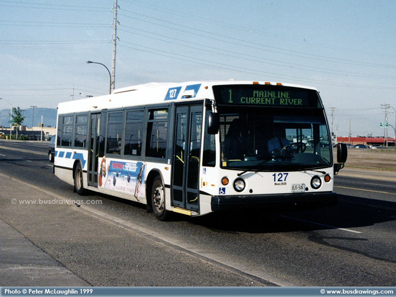 For a small Transit System like Thunder Bay, they sure have a variety of Low Floor buses including these Nova Bus LFS model Low Floors. Photo taken by Peter McLaughlin on June 19, 1999. | |